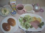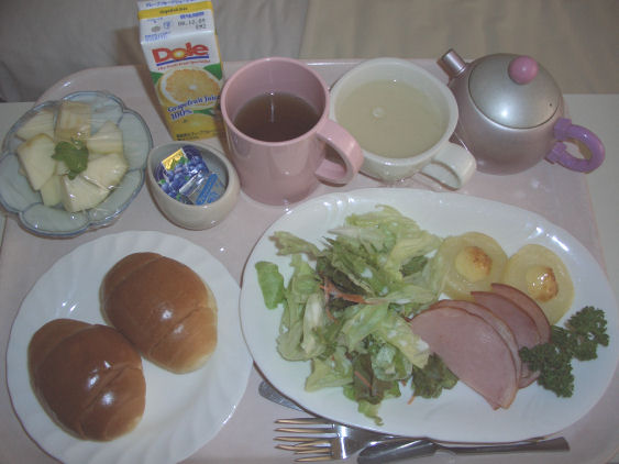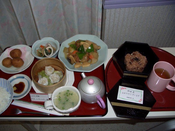 入院中、一度、お食事会があり、その時にはステーキをメインとしたコース料理がでたそうな。(残念ながら、その写真がなく・・・)
